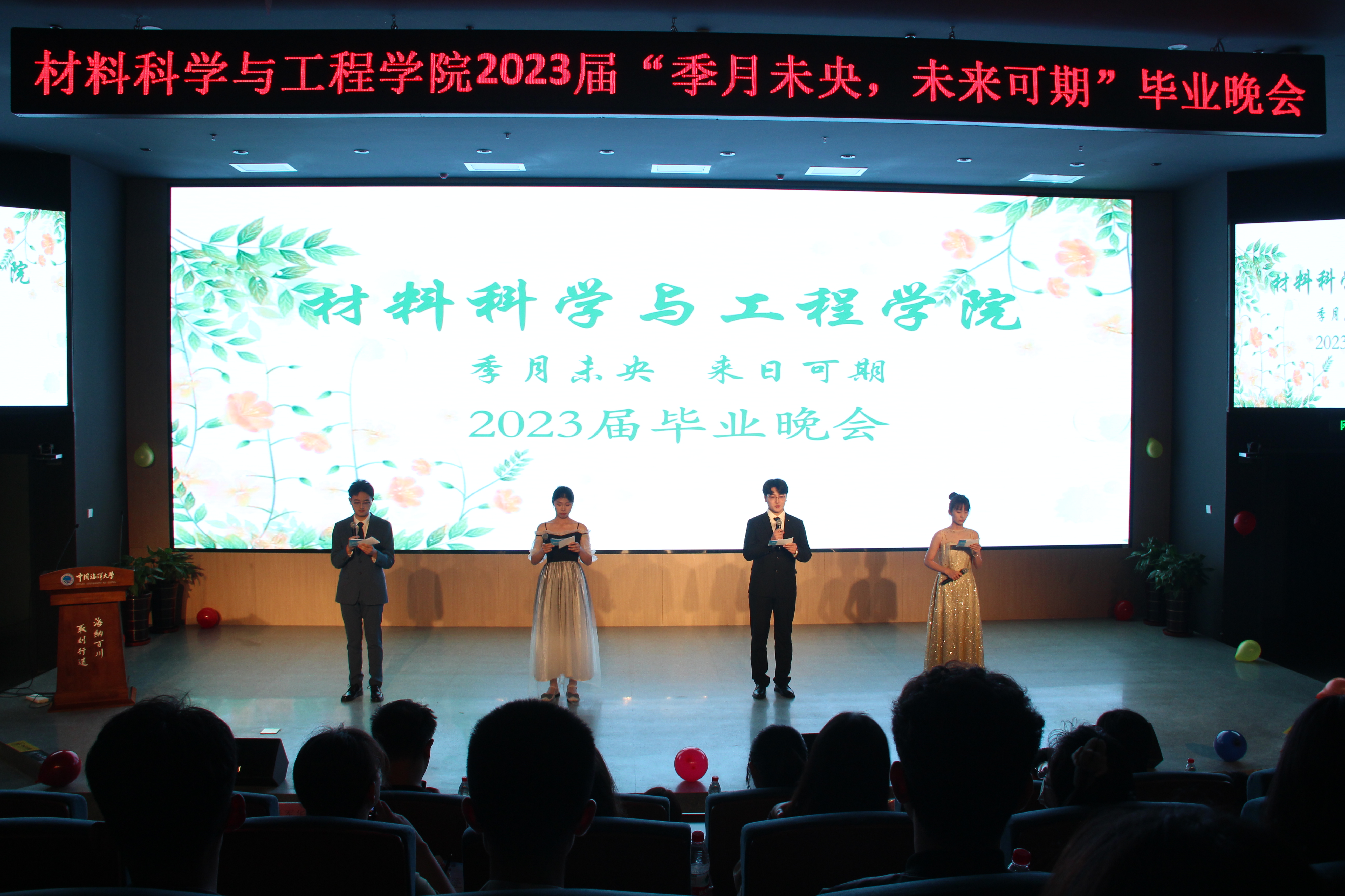 6月1日,材料科学与工程学院2023届“季月未央,未来可期”毕业晚会在学习综合体第六会议室举行,材料科学与工程学院党委书记杜军华老师出席毕业晚会并致辞,为毕业生送上诚挚的祝福和希冀。学校西海岸校区运行管理部、保卫处和学生就业创业指导与服务中心等部门负责人,材料科学与工程学院领导班子成员和师生到场观看了晚会。