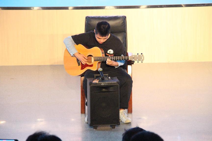 在“回忆过往”篇中,视频《大学生活点滴》带领同学们重温过去的美好;张沫涵带来吉他独奏《distance》,毕业是物理上的距离,但有情谊、有牵挂,我们就从未分开;学弟学妹们带来的合唱《北京东路的日子》为我们展现了相聚离散、欢喜悲伤,诉说着过去的美好以及面对分别的不舍。