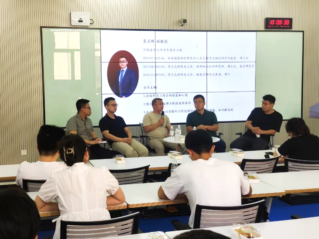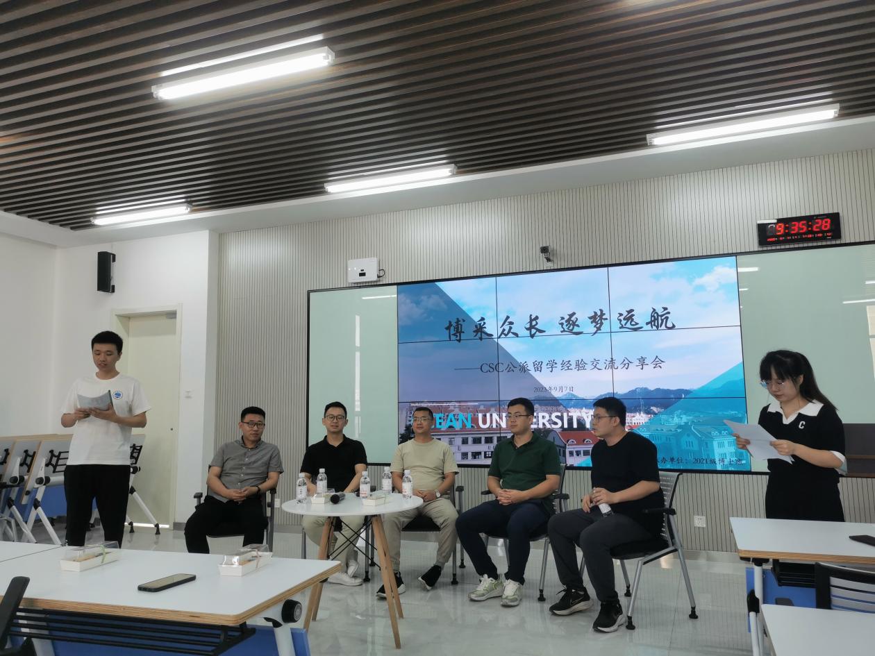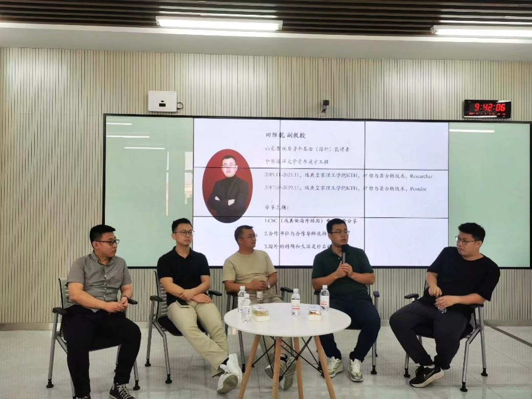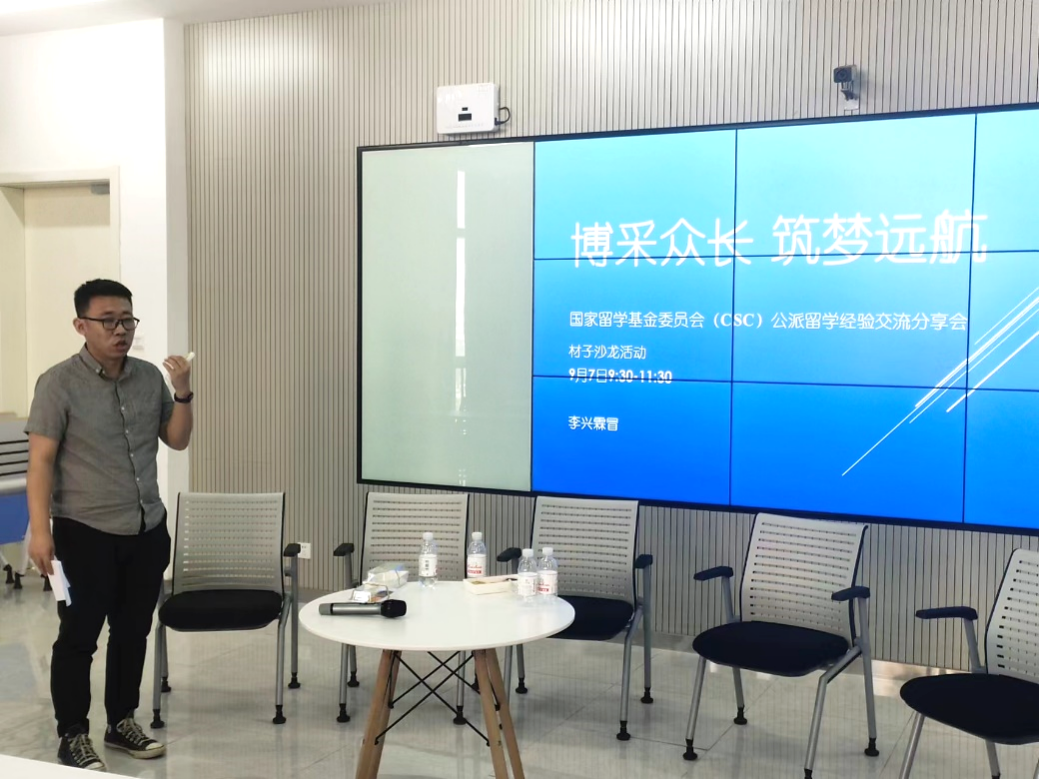 为使学院研究生更好地了解国家公派留学项目以及海外科研生活,9月7日上午,学院在西海岸校区材料楼304智慧教室举办了材子沙龙第二期活动,本期主题为“博采众长,筑梦远航-CSC公派留学经验交流分享会”。本期由2021级博士孙霄、梁涣雨主持,田维乾、陈经纬、夏呈辉、刘德昱等四位青年教师以及2020级博士李兴霖冒作为嘉宾,由材料科学与工程学院主办,材博社、2021级博士班和材料学院博士党支部承办。