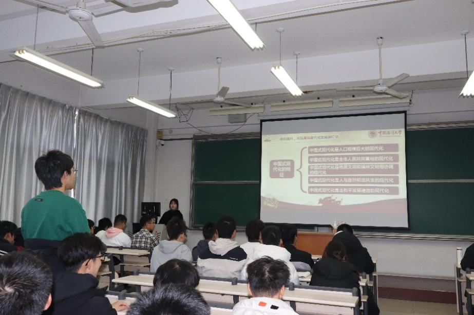 张瑞雪围绕“点亮青岛现代化发展新灯塔、打造青岛现代化发展新引擎、谱写青岛现代化新篇章”三个部分展开宣讲。她通过对比的方式向同学们展现了中国式现代化的五大特征;并为同学们介绍了青岛市现代化取得的重大成就和未来发展目标;同时她还向同学们讲述了海大与青岛间的紧密关系:青岛为海大的诞生与发展提供了土壤,海大则源源不断的为青岛发展输出人和科研成果,为青岛海洋经济发展持续赋能。最后,张瑞雪提出“作为海大学子,未来的你将为青岛的现代化发展做出什么”的问题与现场的同学们进行了积极互动。