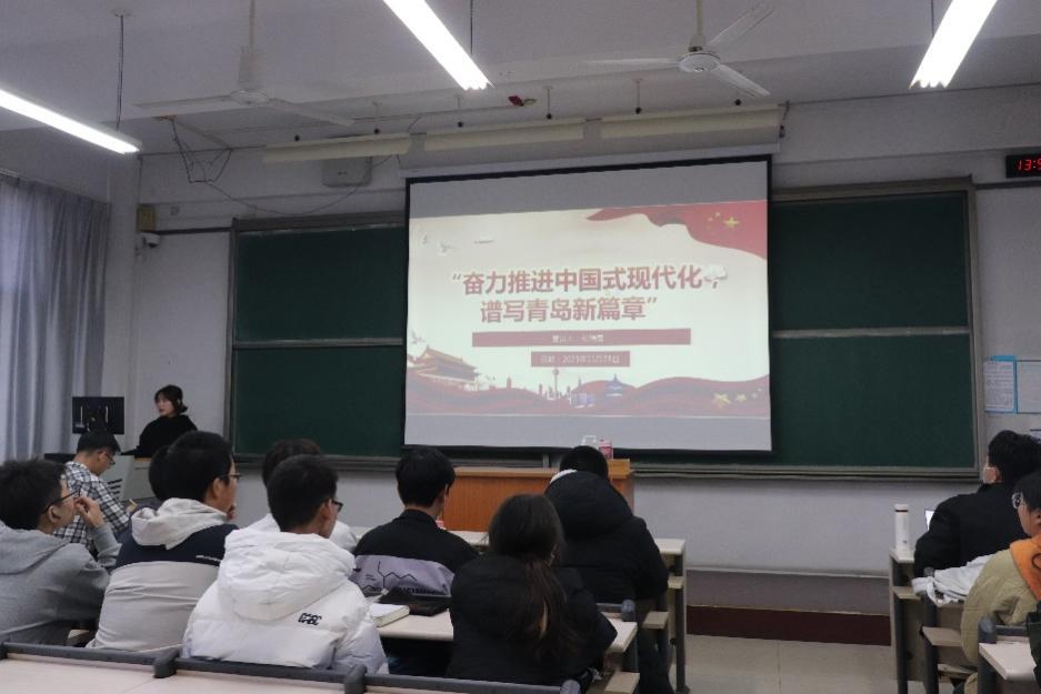 为持续推动党的二十大精神在青年群体中弘扬传播,深化青年思想政治引领,11月23日下午,材料科学与工程学院2023级本科生在崂山校区3310教室开展“奋力推进中国式现代化,谱写青岛新篇章”学习,本次学习主讲人为开云电竞网址青年马克思主义者宣讲团成员张瑞雪。