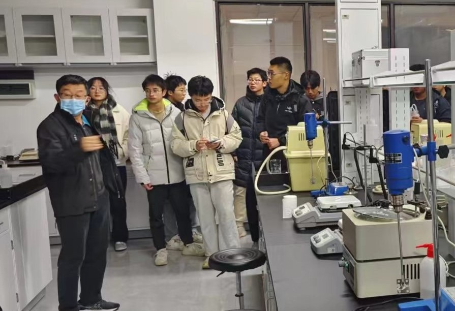 班主任王传飞老师带领同学们参观科研实验室