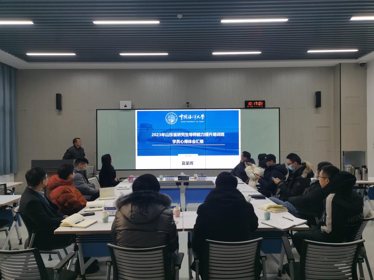 学院青年泰山学者、副教授夏呈辉首先就参加山东省研究生导师能力提升培训班进行心得体会汇报。他介绍了培训的基本情况和培训内容,主要涉及研究生教育发展要求、研究生导师职业素养以及研究生心理健康等方面。夏呈辉在谈到培训心得时提到,研究生导师要及时关注政策信息,认清教育改革新形势,不断探索提升自身和研究生科研能力与素质的新途径,加强对研究生群体的心理健康教育和支持。