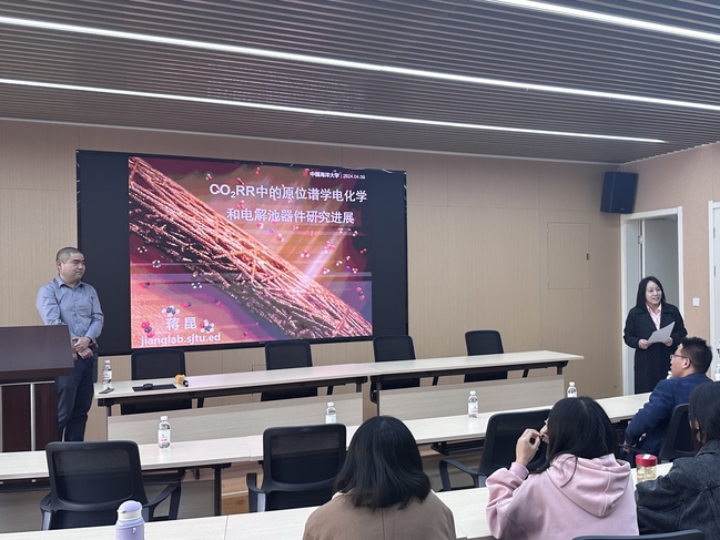 2024年4月9日,上海交通大学长聘教轨副教授,复旦大学青年研究员,国家海外高层次青年人才计划获得者,科技部十四五重点研发计划青年科学家蒋昆受邀来材料科学与工程学院作“CO2电还原反应中的原位谱学电化学和电解池器件研究”的学术报告,报告由高分子材料系主任黄明华教授主持。