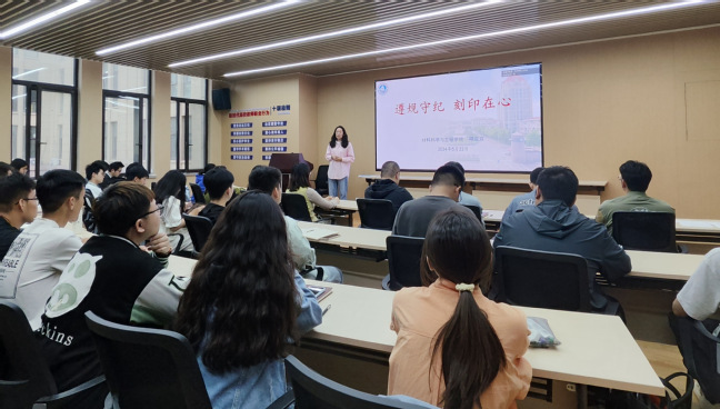 为贯彻习近平新时代中国特色社会主义思想,深入学习习近平总书记关于党纪学习教育的重要讲话和指示批示精神,5月22日晚,材料科学与工程学院党委副书记呼双双以“遵规守纪,刻印在心”为题,在材料楼212为学生党员讲授党纪学习教育专题党课。