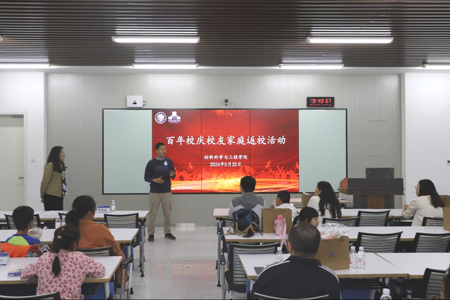 为增进校友与学院之间的情感交流和深度联系,帮助校友子女更全面深入地了解学校与学院,共同迎接学校百年华诞,5月25日,材料科学与工程学院举办校友家庭返校活动。