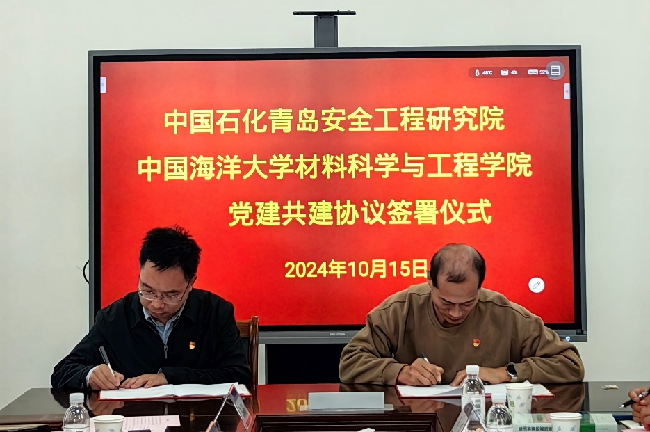 材料科学与工程学院无机材料系教工党支部书记高荣杰与中石化安全工程研究院有限公司设备室党支部书记屈定荣签订了党建共建协议。
