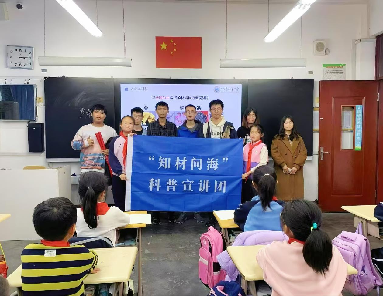 11月14日,材料科学与工程学院“知材问海”科普宣讲团走进西海岸新区红军小学,为学生们带去了一堂精彩的材料科普课,旨在培养青少年对科学的热爱和崇尚,激发他们对海洋科学和材料科学的兴趣。