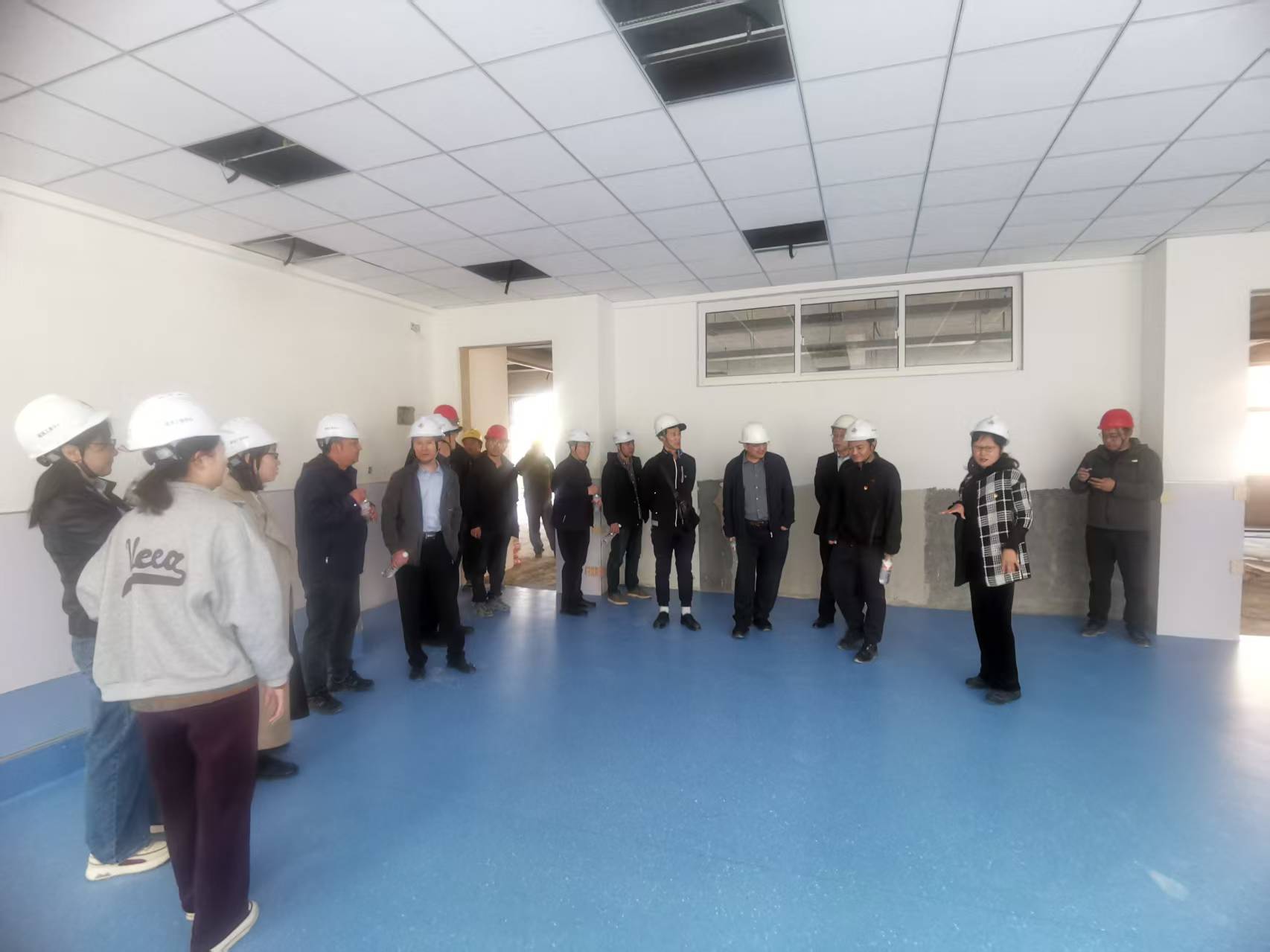 讲座结束后,全体人员前往珠江路小学扩建项目现场,实地观摩了贝壳粉在房建中的实践应用,并参观了贝壳粉刷涂样板房。贝壳粉的使用能够有效减少室内污染物,既体现了环保理念,又具有良好的装饰效果,为师生营造了安全健康的学习环境。学院专家和工务中心技术人员还就贝壳粉的生产工艺、质量控制等问题进行了深入交流。