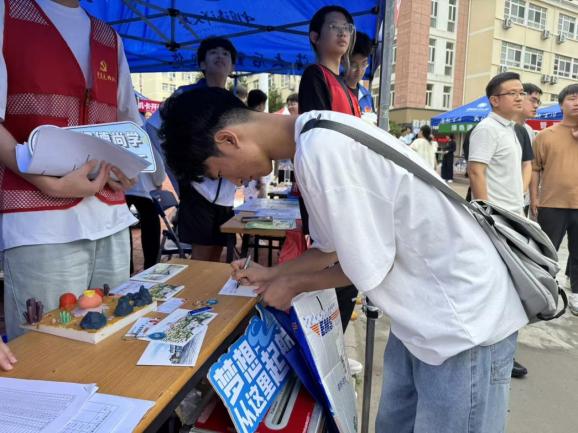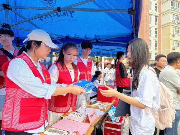 在南海苑宿舍区迎新点,志愿者们化身“校园向导”,热情地帮助新生搬运行李、解答疑问。学院还专门设计了校史院情答题互动环节,并准备学校精美文创作为奖品,充分调动起新生参与的热情,激发他们对学校的认同感、归属感与自豪感。