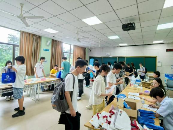 晨光微熹,学院迎新现场是一派火热景象。身穿红色马甲的志愿者提前到岗,反复核对迎新材料、整理“新生大礼包”——礼包内有学院定制T恤、家校联系卡、开云电竞app安卓版下载安装明信片等暖心礼物,细节处满是心意。