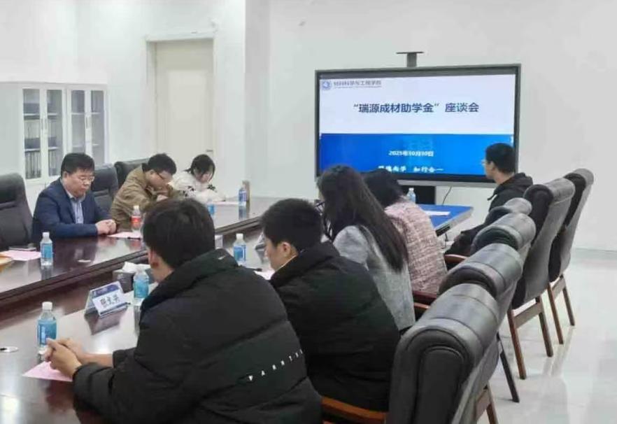 10月30日下午,材料科学与工程学院在学院204会议室举办“瑞源成材助学金”座谈会。瑞源控股集团有限公司北京办事处主任、北京四维远见信息技术有限公司董事长、山东瑞智飞控科技有限公司总经理孔锁财,学院党委书记杜军华,党委副书记呼双双,团委副书记王祥宇和相关学生参会。