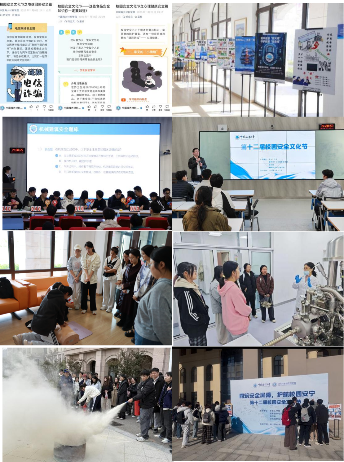 本届校园安全文化节以“同筑安全屏障,护航校园安宁”为主题,组织开展了“平安校园”系列推送、新媒体创意大赛、校园安全知识竞赛、安全主题系列讲座、安全技能实践、安全承诺打卡等活动,吸引学校以及中国石油大学(华东)、哈尔滨工程大学青岛创新发展基地等兄弟院校600多名师生参与。