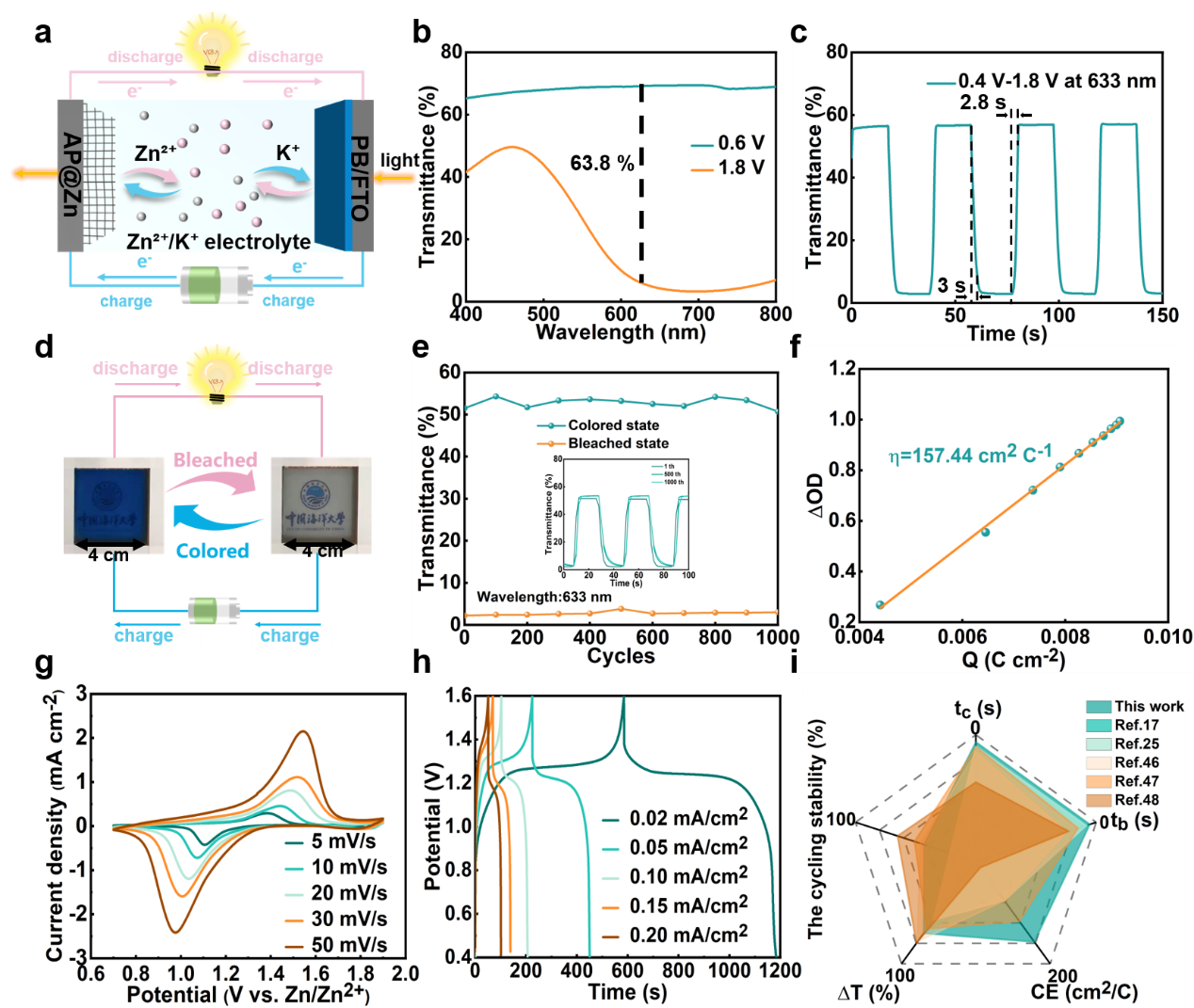 图2. 普鲁士蓝-AP@Zn的电致变色特性