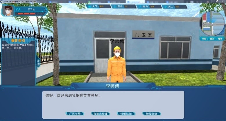 图1牡蛎人工育苗与育种实习实训虚拟仿真系统厂区截图