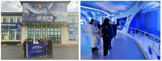 下午,考察团前往寻山集团有限公司,由研发中心办公室主任张筱雨带领师生参观爱伦湾国家级海洋牧场。同学们在微藻培养扩繁基地,观察了现代化藻类生产设备及传感技术,深刻体会到科技如何赋能水产养殖高质量发展。在国家级海洋牧场展厅,学生们详细学习了海洋牧场的建设实践、管理模式及可持续发展理念,对现代海洋资源开发的先进模式有了全面认知。