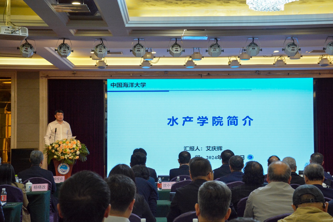 院长艾庆辉汇报学院、学科发展建设情况,他指出,水产学院作为海大两大核心和重要特色学科之一,是我国历次水产业革命性浪潮的主要推动者和实践者,肩负着践行大食物观、保障国家粮食安全的重要使命。在近80年学科建制中,水产学院始终站在领域发展的最前沿,培养了包括8名两院院士、两任国家海洋局局长、杰青等在内的一大批科技领军人才和骨干力量,解决了我国渔业领域的一系列重大科技问题,为我国发展成为世界第一水产大国做出了突出贡献。2024年,以水产学院为主要贡献的植物学与动物学成为海大首个进入ESI前1‰的学科,海洋与淡水生物学位居USNEWS世界大学学科排名全球第一。这些成就离不开所有关心和支持学院发展的同仁们,是水产人的戮力同心,共同奏响了嘹亮的海洋牧歌。