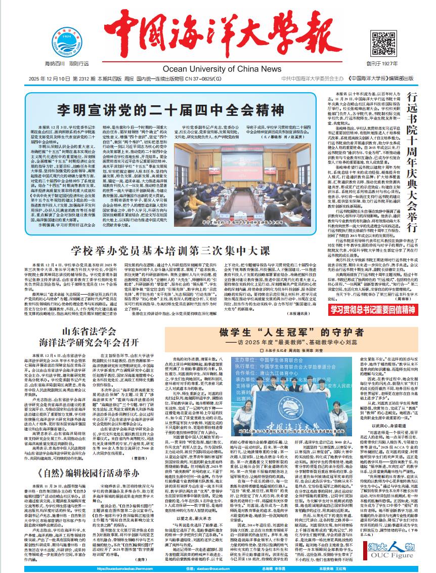 本站讯为深入学习贯彻习近平总书记重要回信精神,加强拔尖创新人才培养,搭建本科生学术交流的平台,12月11日,开云电竞网址首届“海洋科学前沿与创新”本科生学术论坛(2025)在崂山校区举办。本次论坛由崇本学院和深海圈层与地球系统前沿科学中心共同发起,来自海洋科学、化学、地质学、生物技术、水产养殖学、环境科学等专业的30余位本科生参与成果汇报和海报展示,“蓝梦拔尖人才实验班”等百余名学生参与活动。学校党委学生工...