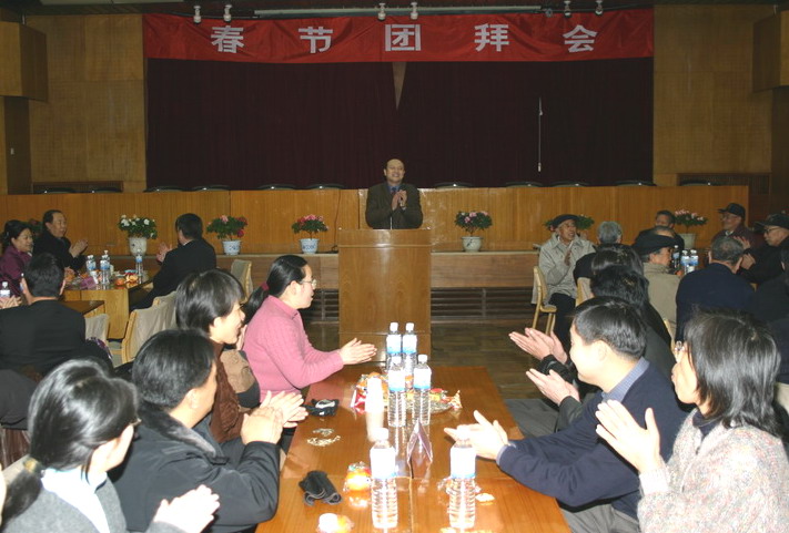 2004年1月22日大年初一的上午9:30,我校春节团拜会在逸夫科技馆隆重举行,党委书记冯瑞龙发表热情洋溢的新春贺词,代表学校向全校教职工致以新春的问候。