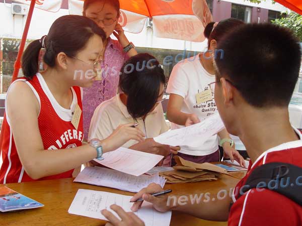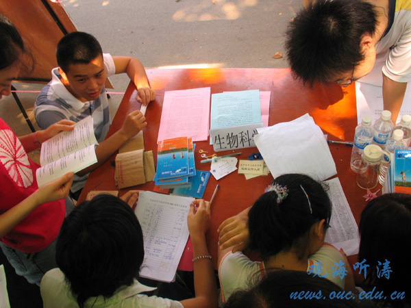 在大一新生陆陆续续来到学校,顺利的报上名办完手续的时候,我们应该感谢在这背后默默的无偿工作的志愿者所付出的劳动,从火车站汽车站的接站到帮助新生办理入学手续,从发放军训服装生活用品到送新生到宿舍,无处不见他们的身影。除了完成自己的本职工作,他们还热心的帮助新生家长与同学。他们用自己辛劳的汗水与真诚的微笑让刚刚来到海大的新生们感到了温暖。让我们向这些可爱的同学们道声谢谢!