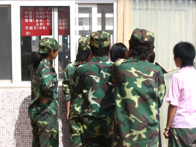关闭的餐厅门,挡不住我们热切的期盼,只想再看教官一眼。