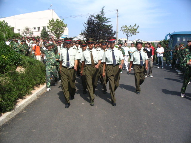 唱着嘹亮的军歌,教官终于出现在我们等待的视线里。