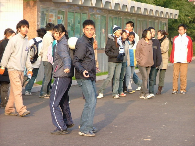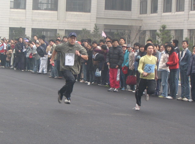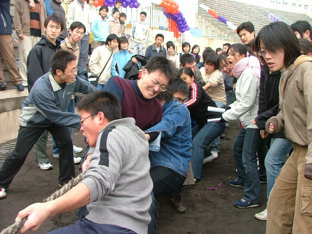 拔河比赛中,参赛同学拿出必胜的信心、使出所有的力气,同心合力为班级争光。