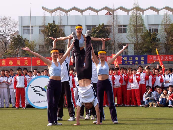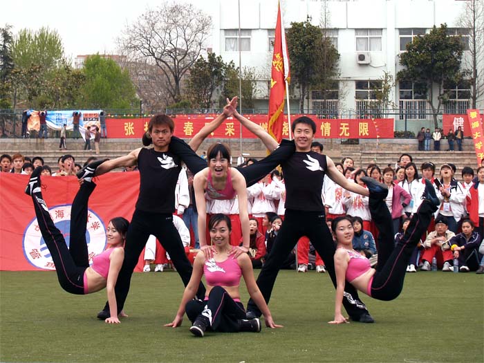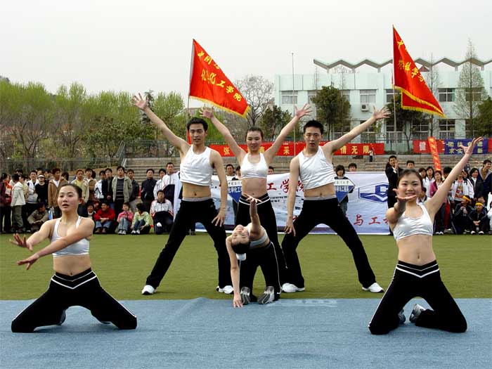 本站讯 2005年4月20日下午,开云电竞网址2005年体育运动会之健美操比赛在鱼山校区体育场举行。