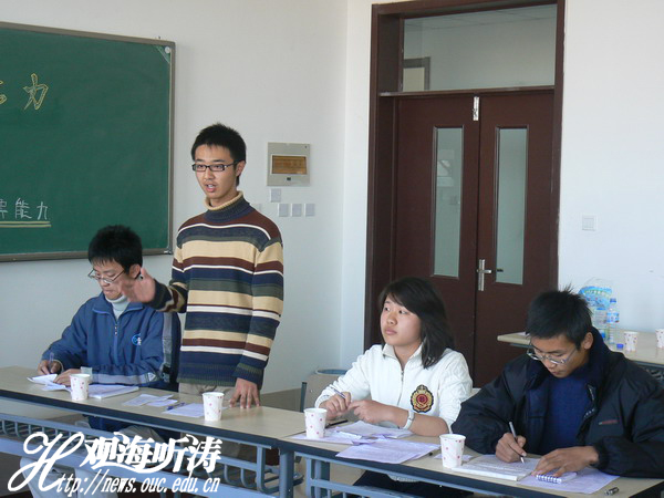 初赛结束后,王龙玺分别到鱼山和浮山看了其他两个校区的初赛,分析其他选手的特点与利弊,直到决赛赛场与他们同场竞技。他三天的准备和赛场上的轻松表现为他的胜出加大筹码,最后获得决赛第二的好成绩。可是赛后他也坦言“当评委说,我在模拟应聘环节中表现的只考虑自己,却没有换立场为他人考虑时,我心里并不服气。可是赛后仔细回想一下,发现也许早已习惯的思维方式,自己并没有在意,但在比赛中就自然表现出来了。”这就是这个在上大二,不怕输赢的,荣辱不惊的胜者。他追求,他挑战,他反思,他为迎接胜利而等待着。