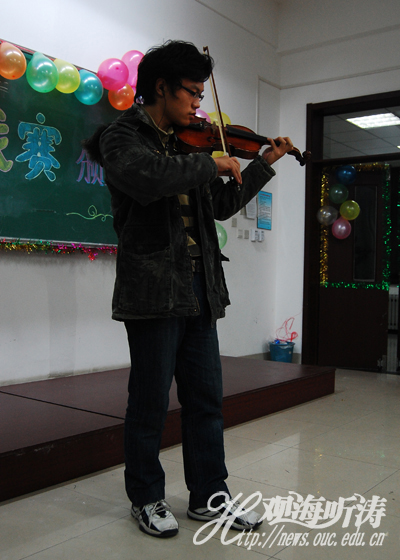 晚会第一阶段是才艺表演。火热的街舞调动起观众的热情;小提琴独奏让大家欣赏到西方音乐文化;一首《踏浪》表达了对生活的歌颂。阵阵掌声驱散了今晚的寒气,笑容呈现在每个人的脸上。