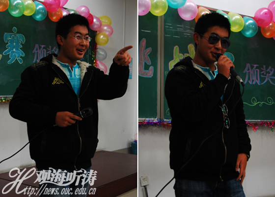 第二阶段是颁奖环节,获奖队伍依次亮相并说出自己的获奖感言。其中“图腾”代表队表达了自己对比赛主办方的感谢。“HQS海之队”则着重强调了这一个月与队友们结下的深刻友谊。“今天很残酷,明天很残酷,但是后天很美好!”一句话道出“卖布头”队成员在这次比赛中的收获。“我们在推销时,第一天没有卖出一件产品,当时真的想放弃,但是咬咬牙坚持过来了,最终在第二天下午接到了第一张订单。”队员王晨这样向同学们讲述自己推销产品的经历。他告诉同学们遇到困难不要放弃,坚持到底就是胜利。颁奖环节中穿插了相声表演和互动游戏。