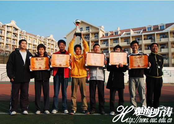 男子组颁奖仪式,管理学院高举冠军奖杯