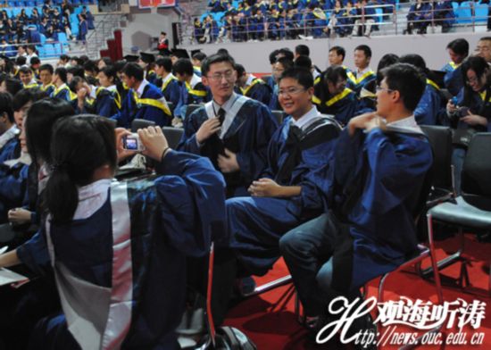 环境规划与管理专业研究生毕业生刘洁:“马上毕业了,心里还是很开心的,希望所有同学都能表现的更自信更优秀。也希望自己能在未来的工作岗位上能把在海大学到的知识运用到工作当中。”宪政专业研究生毕业生相焕伟也说到:“参加毕业典礼,心里很激动,等这一刻等了三年,即将毕业希望母校的明天会更好,至于自己,希望今天我以海大为荣,明天海大以我为荣。”