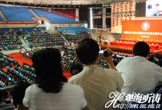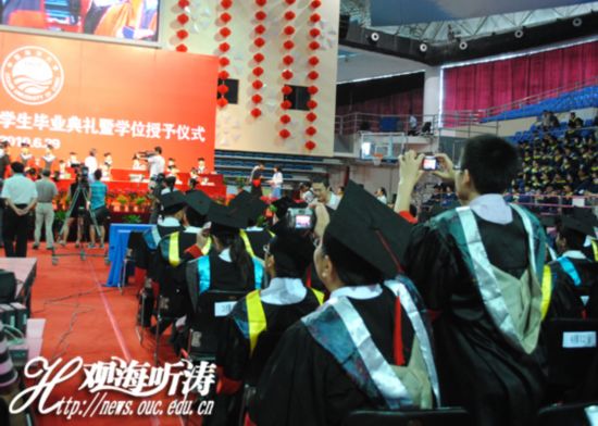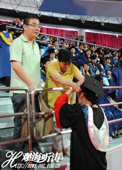 为了见证孩子人生中的这一重要时刻,许多学生家长专程来到典礼现场,一位家长说:“请假来看孩子的毕业典礼,心里很激动,感谢学校这些年来对孩子的培养,也希望孩子不要忘记母校的培养,能在社会上取得更好的成绩。”另一位学生家长也对记者说到:“我是专程来看孩子们的毕业典礼的,心里很激动,感谢海大对孩子的培养,希望未来孩子和学校都能更上一层楼。”