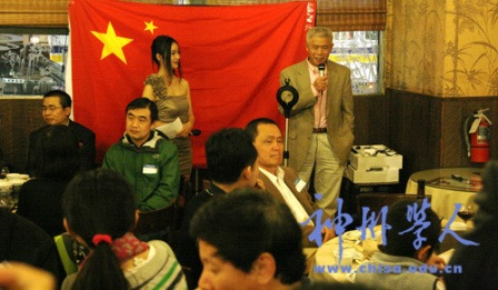 中国高校领导团团长、上海财经大学领导马钦荣发表讲话,对总领事馆和联合会的安排表示感谢,他以高校管理者的身份,指出国家扩大教育开放是英明的,是具有长远的战略眼光,是建设教育强国的重要途径。马钦荣指出,作为教育大国,我国在教育上的影响力与经济在世界领域的影响力相比要小得多,扩大教育肯定会受益,但大学的管理者应真正理解现代大学制度、产学研怎样结合,而要提高教育质量,就必须与世界真正意义上的一流大学进行深入交流,必须走出来,才能发现自身发展中存在的问题,才会明白教育应该朝什么方向走。马钦荣强调,任何大学的模式都有其文化环境问题,我们在学习西方教育经验的同时,必须注意两国文化环境的差异。他提及耶鲁大学校长访华时曾告诫中国高校管理者,美国的这一套中国可以学,但必须考虑到自身特殊的文化环境。因此,中国教育的发展不能盲目照搬国外模式,必须考虑到中国自身特殊的文化环境,努力寻求适合自己的发展道路。马钦荣最后代表国内高校领导团表示愿意提供交流平台,为国外优秀人才的引进做牵线搭桥的工作,他希望在座的学人学者早日学成,报效祖国。
