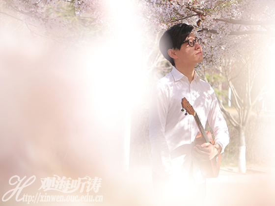 13高分子李昌杰,两度代表学校参加央视《五月的鲜花》演出、三届校歌赛、青春风采大赛,以歌手,以创作,伏身于海大校园音乐的鼓点,或激情洋溢、或低回婉转。从《春风十里》到《樱海》,他和他的音乐如风伴雨,如影随形。