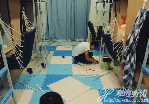 书写于网络上的改造过程看似轻松简单,实际上也花费了他们不少力气。仅仅是贴壁纸,就用了八九个小时。“贴壁纸实在是个技术活,”苏家琛感慨,因为最初掌握不了方法,很多地方都重贴了无数次,“好在有手巧的室友相助,这项‘工程’总算是完成了。”无论是在地上组装木质的鞋架和茶几,将耐心与汗水注入螺丝钉与木板的一次次激烈的“对抗”,还是细致铺好地板后一起满足地仰躺于上,六人的友情,都在这一次次携手并进里悄然织起密密的网,于无形中加深了。