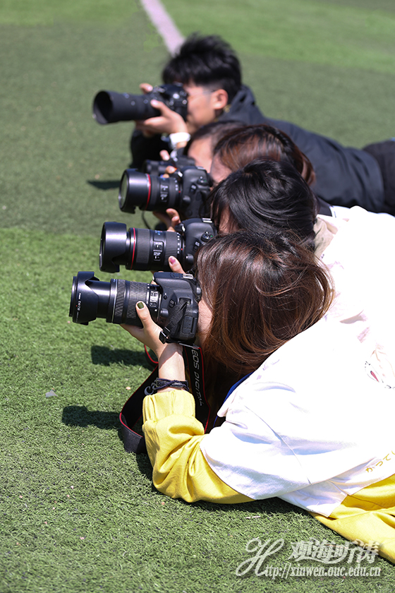 慎思流露于笔尖,真实被镜头记录,他们捕捉最精彩最迷人的瞬间,将一个个时光的碎片拼凑,重组。镜头是他们的眼睛,笔触是他们灵魂迸发之地。2017级工程管理的张静怡已经在赛场上坚持连续拍摄两天,机器不停人不停,她说:“校媒某种意义上来说就是在做新闻,及时性的需要促使我们坚持吧,而且能记录这些美丽的瞬间我们也同样能感到快乐。”一笔下手,记刻波澜,快门一闪,瞬间永恒。