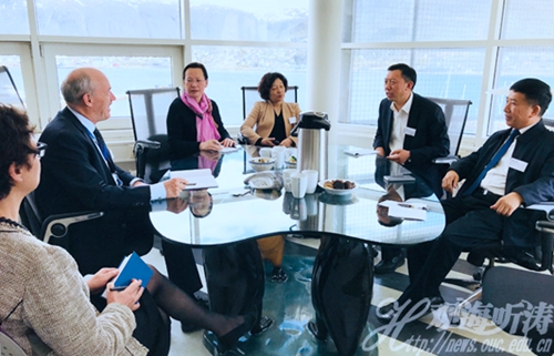 挪威极地研究所所长Ole Misund(左二)等会见代表团一行