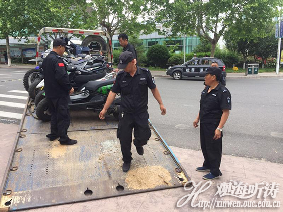 为了确保上合峰会期间海大师生的安全,保卫处付出了极大的努力,不仅是关键区域24小时轮值,在校门严格实施管控,控制了外来车辆和校外人员的进出。同时,对学校内交通“老大难”的摩托车、电动车问题进行了处理,校园内部的交通问题得到了很好的缓解。同时,保卫处给学校寄递企业管理部门后勤集团下达了通知单,要求寄递企业严格落实三个百分百,确保没有能够危害到师生安全的危险品进入校园。