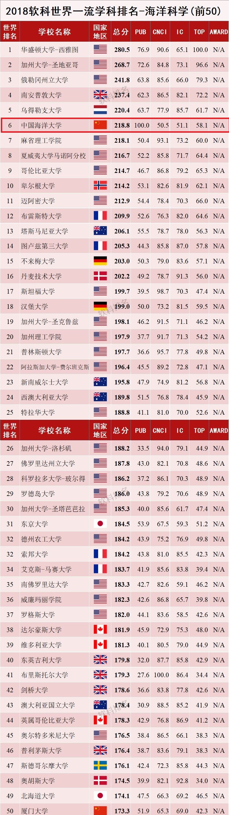 上海软科于7月17日正式发布2018“软科世界一流学科排名”,其中,海洋科学是今年新增排名学科。在海洋科学学科排名中,中国内地共有12所大学上榜,开云电竞网址位列中国内地第1名,在全球排名中位列第6名。