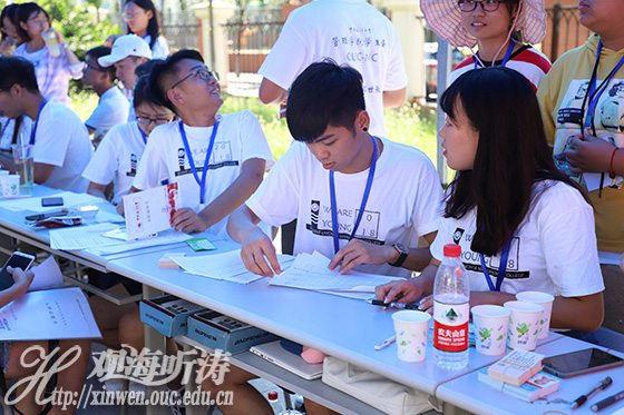 穿过阳光而来的风是闷热的,浸透着夏日的气息。每一位坐在桌子后微笑迎接新生的同学都饱含着热情和对新生的期许,缓解了新生们的无措和不安,引导着他们踏出迈入校园的第一步。