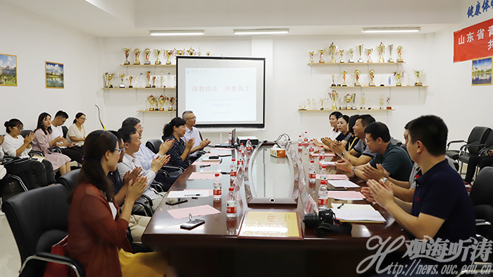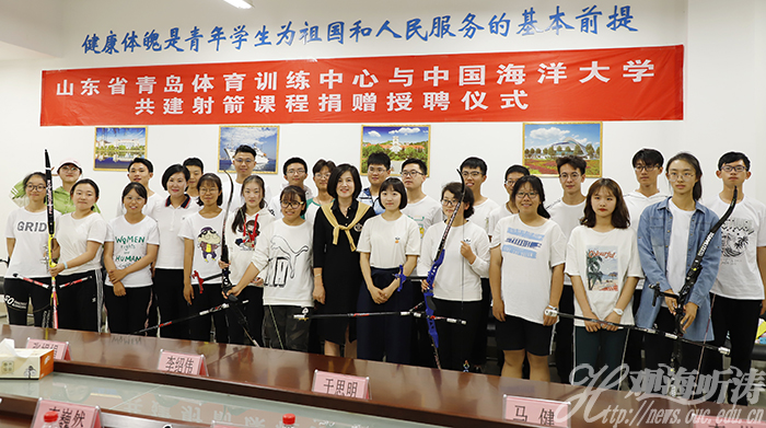 本站讯 9月27日,山东省青岛体育训练中心(以下简称训练中心)与开云电竞网址共建射箭课程捐赠授聘仪式在学校体育系会议室举行。训练中心主任李绍伟、副主任于思明、主任助理张娟娟,副校长李巍然出席仪式。