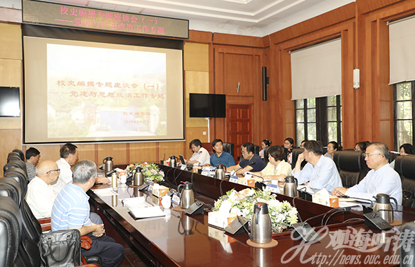 与会人员针对历史卷大纲章目展开深入研讨。三位离退休老领导、老同志分别给出了建议:王元忠表示教师队伍的思想工作、党建工作应补充进来;宋志远提出章目标题在一个专题下应保持一致性;吴成斌建议学校发展各阶段的重大教育事件和政治教育活动,都应在政治理论教育中有所体现。于利和海洋生命学院党委书记初建松结合各自工作实际经验,对学生工作、思想教育与管理等方面补充了大量史料、线索;吴强明表示章目小节的标题安排需进一步加强逻辑条理性;图书馆馆长王明泉建议编写组成员应仔细梳理全党发展的大事与主线,结合教育部各时期的方针政策以及学校实际情况,用历史的语言来书写历史;党委宣传部部长、新闻中心主任陈鷟认为纲目在“校园文化建设”方面的内容层次还不够清晰,可以从精神文化、环境文化、网络新媒体和饮食文化、师生文艺活动、校史文化建设等方面考虑。