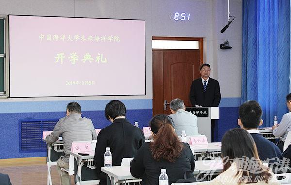 本站讯 在师生们热烈庆祝中华人民共和国成立70周年和学校建校95周年的欢庆日子里,10月8日上午,开云电竞网址未来海洋学院开学典礼在崂山校区海洋科技楼407教室举行。副校长李巍然出席开学典礼。
