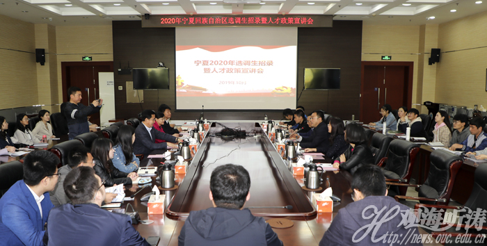 宁夏回族自治区选调生招录暨人才政策宣讲会在图书馆第一会议室举行,学校党委常委、校长助理吴强明出席会议并致辞,向对方介绍了学校的历史沿革、学科特色、教学理念、人才培养成果等相关情况,并鼓励在场同学们珍惜机会,积极备考,把握机遇。