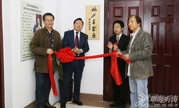林少华(左二)、福永护(右二)、刘咏(左一)、高建刚共同为林少华书房揭牌