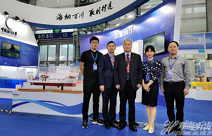 此次展会恰逢学校深圳研究院签约落地之际,为彰显学校在海洋科学领域实力,使深圳更为全方位地了解海大,科学技术处牵头相关学院(重点实验室)结合深圳需求,重点遴选全校近20年的研究成果,经过全新策划设计,围绕“透明海洋”“蓝色粮仓”“蓝色药库”三大系列,通过实物、模型、多媒体、智能体验等多种方式全方位展示学校优质成果。其中,“透明海洋”板块采用沙盘与模型方式全面立体展现了学校自主构建的“两洋一海”立体化观测系统,高端仪器研发及先进的科考船队等;“蓝色粮仓”板块呈现了学校从“基础研究、种质培育、病害防治、饲料开发、绿色养殖、装备开发、高值化利用”全链条的技术体系和成果;“蓝色药库”板块集中展示了学校从海洋生物资源到成药的全链条高端研发平台与成果。
