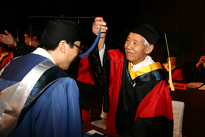 文圣常院士为毕业生拨正流苏