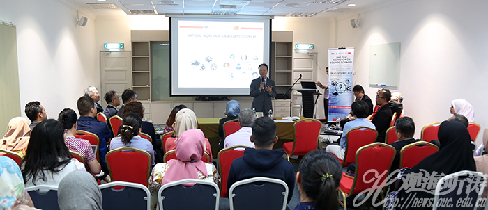 中国工程院院士麦康森教授在随后举办的水产科学研讨会上致开幕辞,并和Noraieni校长一起对研讨会进行了总结。他说,举办联合中心学术研讨会,标志着两校合作步入新阶段,研讨的主题契合当前社会发展趋势,有助于两国在海洋领域的研究创新,期待两校的合作研究促进中马乃至世界海洋事业的发展。在听了两校6位学者的报告后,他总结说:大家的研究和研讨都很深入,找到了共同的研究兴趣。积跬步方致千里,今天是个很好的开端。研讨会不仅使大家在科研上受益,还使得在文化上交融。年轻学者要放眼世界、具有全球视野,才是世界的未来和希望。学校要大力资助学生走出去,鼓励年轻一代共同对连接了世界的海洋进行研究,这也是两校合作的重要领域,未来会结出丰硕的成果。
